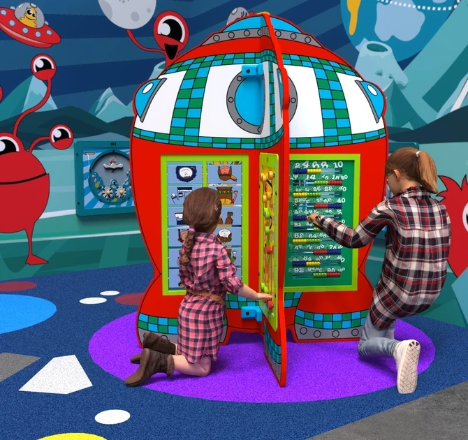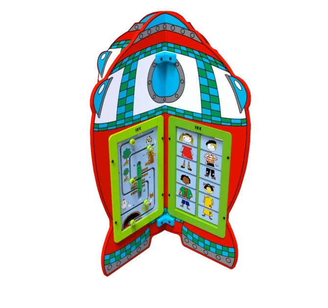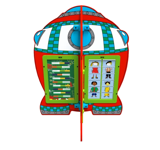 Speelsysteem Planet transport is een speelelement in de vorm van een ruimteschip, waarop vier rechthoekige wandspellen naar keuze bevestigd kunnen worden. Het speelsysteem kan worden ingezet als een losstaand speelelement of als onderdeel van een grotere speelhoek.