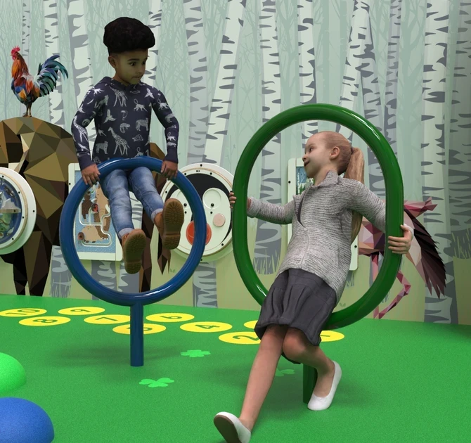 Wij kunnen extra klim en klauter plezier toevoegen aan de speelvloer door klimelementen Opaal of Wobble te plaatsen. Hier kunnen kinderen, dankzij de EPDM vloer, veilig in klimmen.