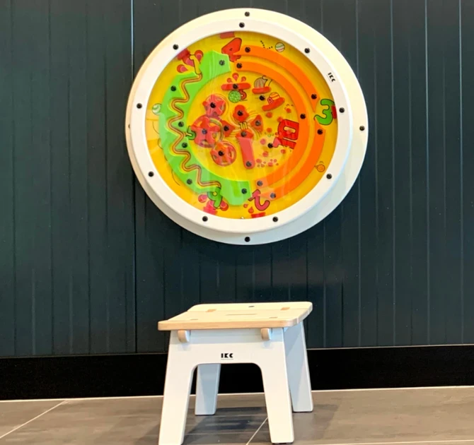 Dit spel is geschikt voor kinderen met een leeftijd van 2 tot 8 jaar. De wandmodule bevat geen losse onderdelen en is daarmee veilig, praktisch en kindvriendelijk. Wandspel Spinball is onderdeel van de IKC Classic collectie. Om deze spelmodule aan de muur te monteren is een extra wandpaneel nodig. De Spinball is een volledig door IKC ontworpen wandspel die op ambachtelijke wijze is gezeefdrukt.