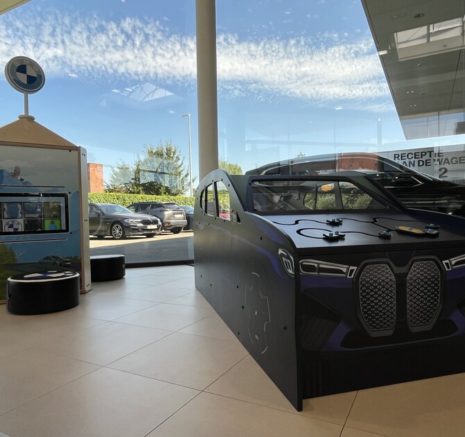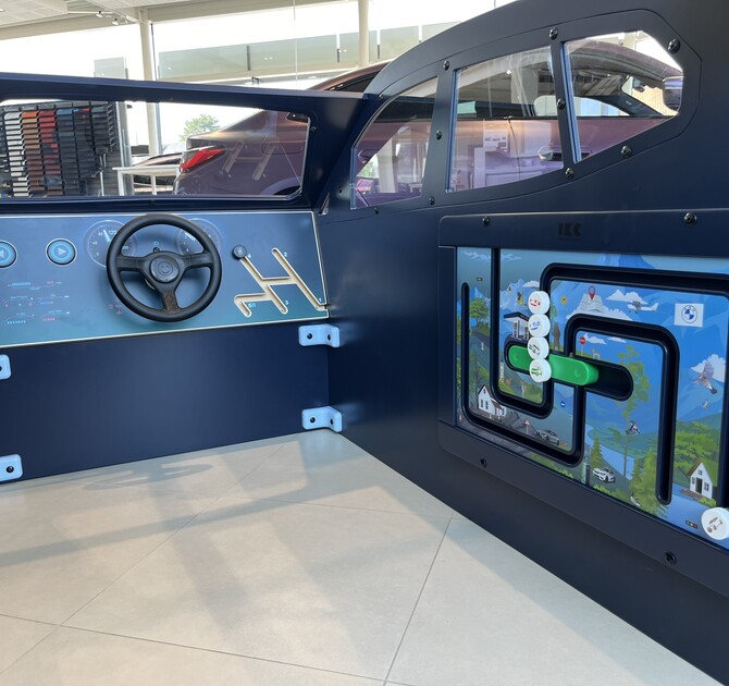 Samochodowi towarzyszy wieża zabaw IKC, której trzy strony są pokryte sitodrukiem z motywami BMW. Gra Memory, spersonalizowana z różnymi częściami samochodowymi BMW, stanowi wyzwanie dla młodych umysłów, jednocześnie wzmacniając kultowy wizerunek marki. Gra ścienna Road Trip i interaktywny ekran 17-calowy Delta dodatkowo wzbogacają strefę zabaw, zapewniając rozrywkę i zaangażowanie dzieci, podczas gdy ich rodzice odkrywają najnowsze modele BMW.