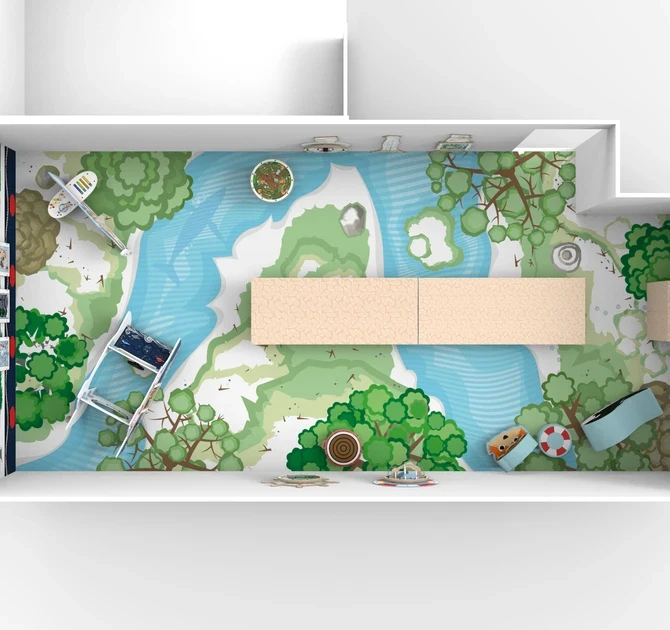 Dzięki tej podłodze do zabawy każde miejsce do zabawy zamieni się w chłodny śnieżny krajobraz, przez który przepływa rzeka.
