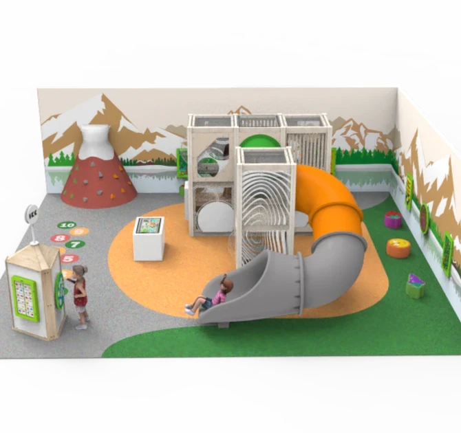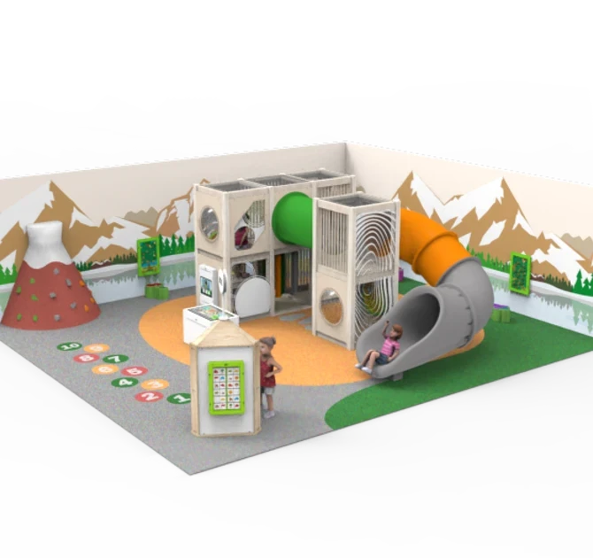 Игровой комплекс выполнен в современном эко-стиле из дерева и натуральных материалов. Дети надолго увлекутся необычными играми и задачами которые размещены снаружи и внутри комплекса. Малыши до 3х лет могут играть снаружи в развивающие, интерактивные модули, дети постарше весело играют внутри. Игровой комплекс безопасен, спроектирован в соответствии со стандартами безопасности для детских площадок по ТР 042. Идеально сочетается с нашим развивающим оборудованием, интерьерными решениями из ЕПДМ крошки, тематическим оформлением стен.