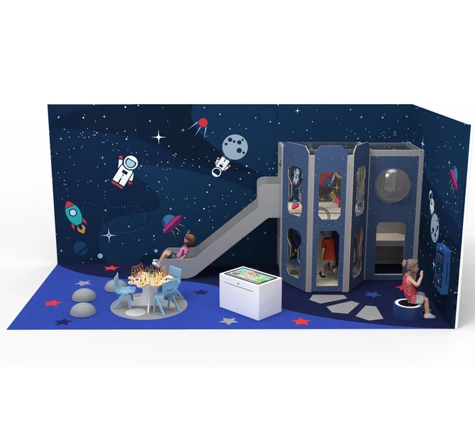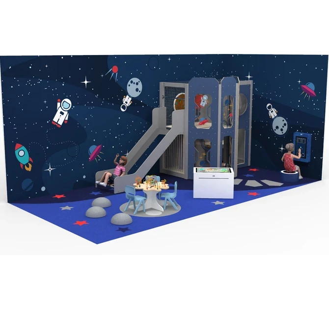 Игровой комплекс безопасен, спроектирован в соответствии со стандартами безопасности для детских площадок по ТР 042. Идеально сочетается с нашим развивающим оборудованием, интерьерными решениями из ЕПМ крошки, тематическим оформлением стен.