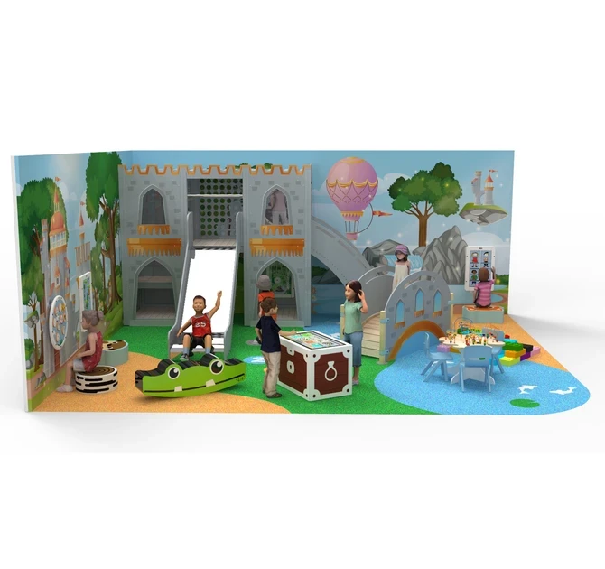 Игровой комплекс безопасен, спроектирован в соответствии со стандартами безопасности для детских площадок по ТР 042. Идеально сочетается с нашим развивающим оборудованием, интерьерными решениями из ЕПМ крошки, тематическим оформлением стен.