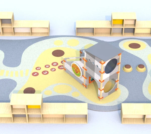 Элементы для лазания: дополнительная игровая активность, встроенная в покрытие, безопасная благодаря амортизирующей основе.