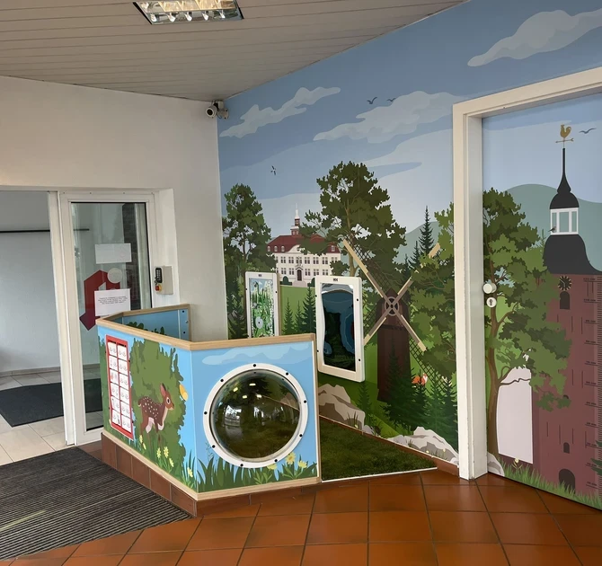 Çevredeki unsurları yansıtmak üzere çocuk alanında adliye binası, St. Andreas Kilisesi ve yel değirmeni gibi bölgenin simge yapılarının çizimleri yer alıyor. Kilise kulesi, çocukların ziyaretleri sırasında boylarını ölçmelerine olanak tanıyan bir büyüme cetveli olarak ikiye katlanmaktadır.