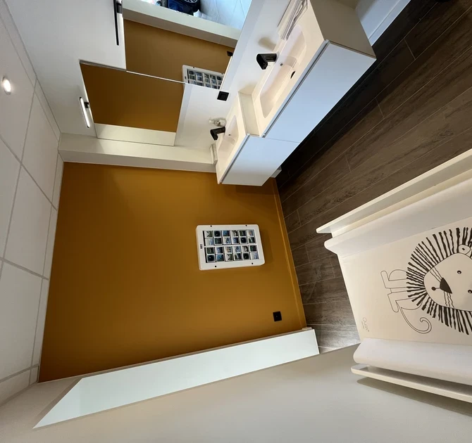 Ailelerin ihtiyaçlarını anlayan BMW de Schepper ayrıca aile banyosuna özel bir hafıza duvar oyunu entegre etti. Bu düşünceli dokunuş, banyo molalarında bile küçüklerin ilgisini koparmamayı başarır ve ebeveynlerin kendi ihtiyaçlarına veya diğer çocukların ihtiyaçlarına endişe etmeden bakmalarını sağlar.