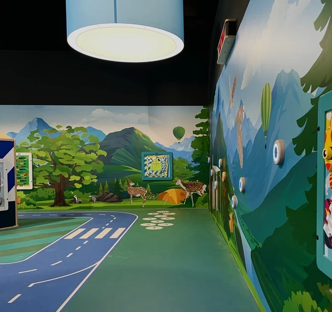 Dekota ile tamamen orman temasıyla oluşturulan duvarlar, çocuklar için daha da zengin bir deneyim sunar. Duvarlardan birinde, tamamen entegre butonlar bulunan bir aktivite duvarı vardır. Aktivite duvarı, iki çocuğun kendi renklerinde yanan tüm ışıklara ilk dokunan olmak için yarıştığı bir oyundur. Hareket etmeyi eğlenceli hale getiren ve el-göz koordinasyonunu geliştiren bir aktivitedir.